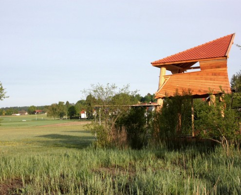 /in Uncategorized /von axel.pfeilerNicht nur Vogel, Katze, Maus – sondern mit etwas Glück auch Storch, Raubwürger oder Bekassine gibt es im Ampermoos bei Kottgeisering, Landkreis Fürstenfeldbruck zu sehen. Bis dato aber nur mit einem sehr guten Fernglas. Dank des Naturbeobachtungstrums sitzt man in Zukunft mitten drin im Ampermoos und sogar noch etwas darüber. Der „Vogelturm“ wie er bei den Einheimischen heisst, steht am Ende eines 150 Meter langen (und nach stärkerem Regen auch mal überschwemmten) Pirschweges.